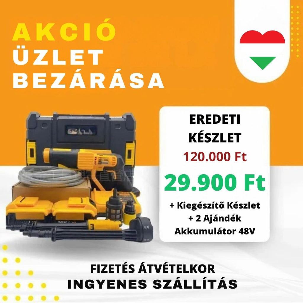 Hordozható Magasnyomású Mosó + Kiegészítők + 2 Ajándék Akkumulátor (48V)